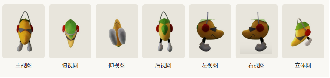 外观产品应提交六面正投影视图和立体图,六面正投影视图是指:主视图、后视图、左视图、右视图、俯视图、仰视图。